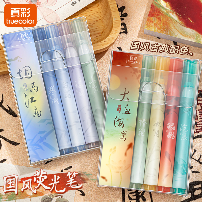 真彩新国風蛍光ペン学生用高颜値カラーマーカー大容量重点マーク手帳ペン