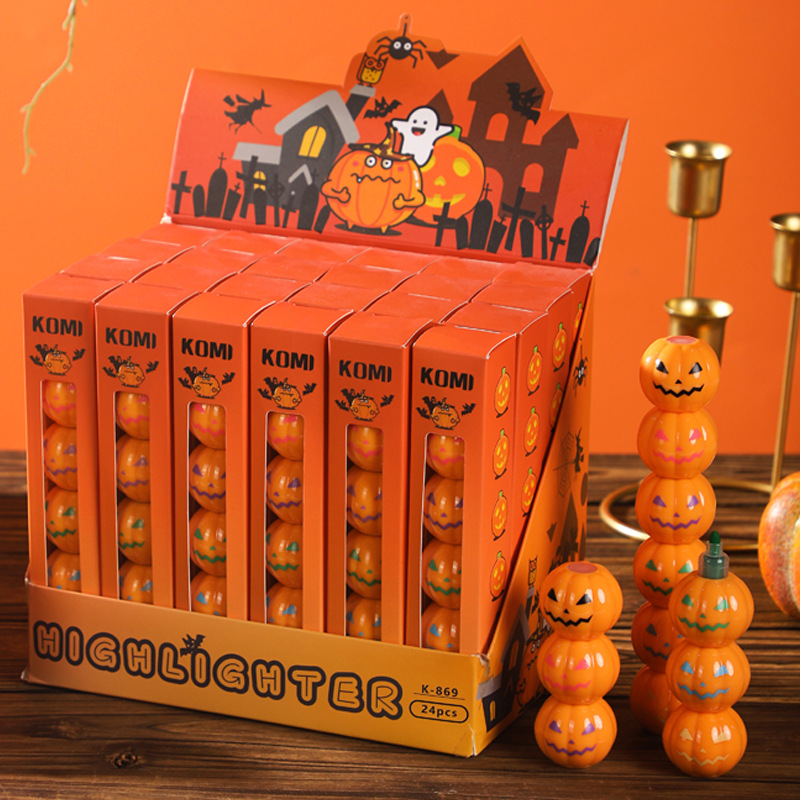 KOMI創意ハロウィーンカボチャの蛍光ペン卸売り児童小学生は重点マークの手帳ペンプレゼントを書いている