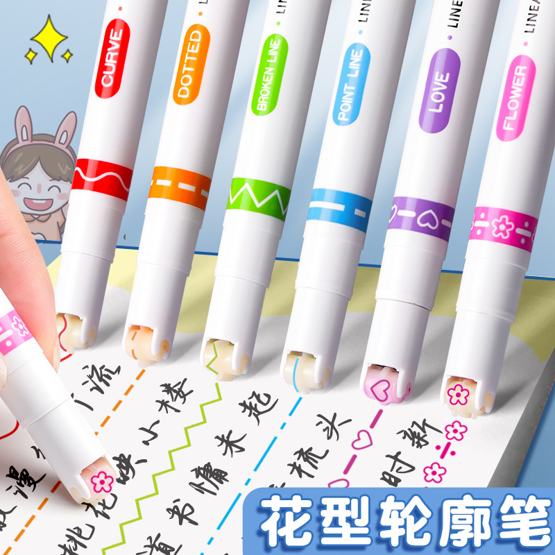 レースの輪郭のペンのローラーのペンの波の曲線のペンの星の雲の花の形のペンの変色の印鑑のペンの手の蛍光ペン
