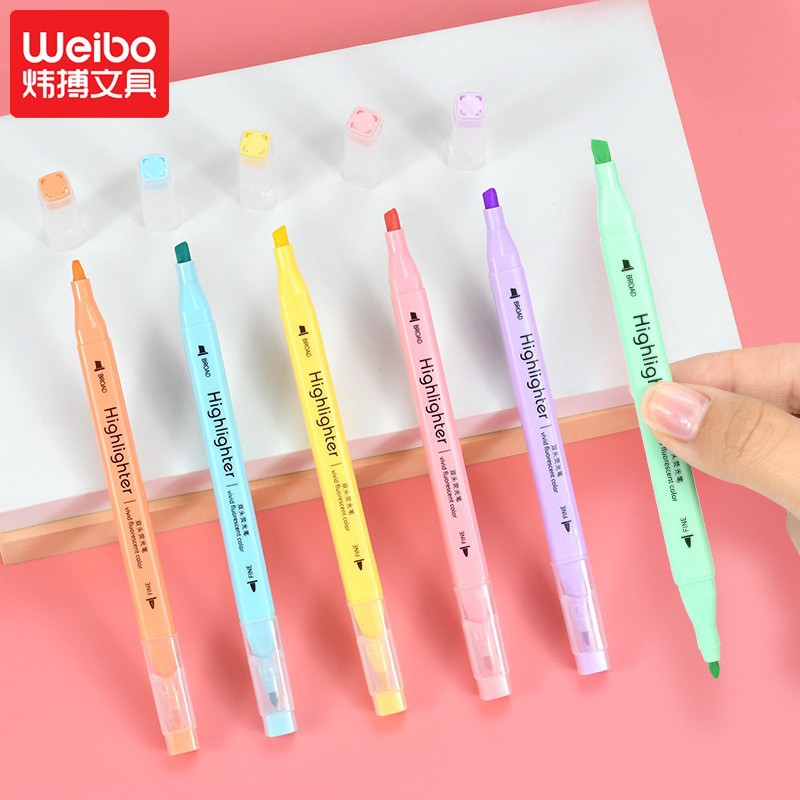 Ins風蛍光ペン学生専用ダブルヘッド重点カラーペン手帳ペン6色マークペン文房具セット卸売り