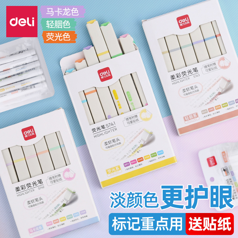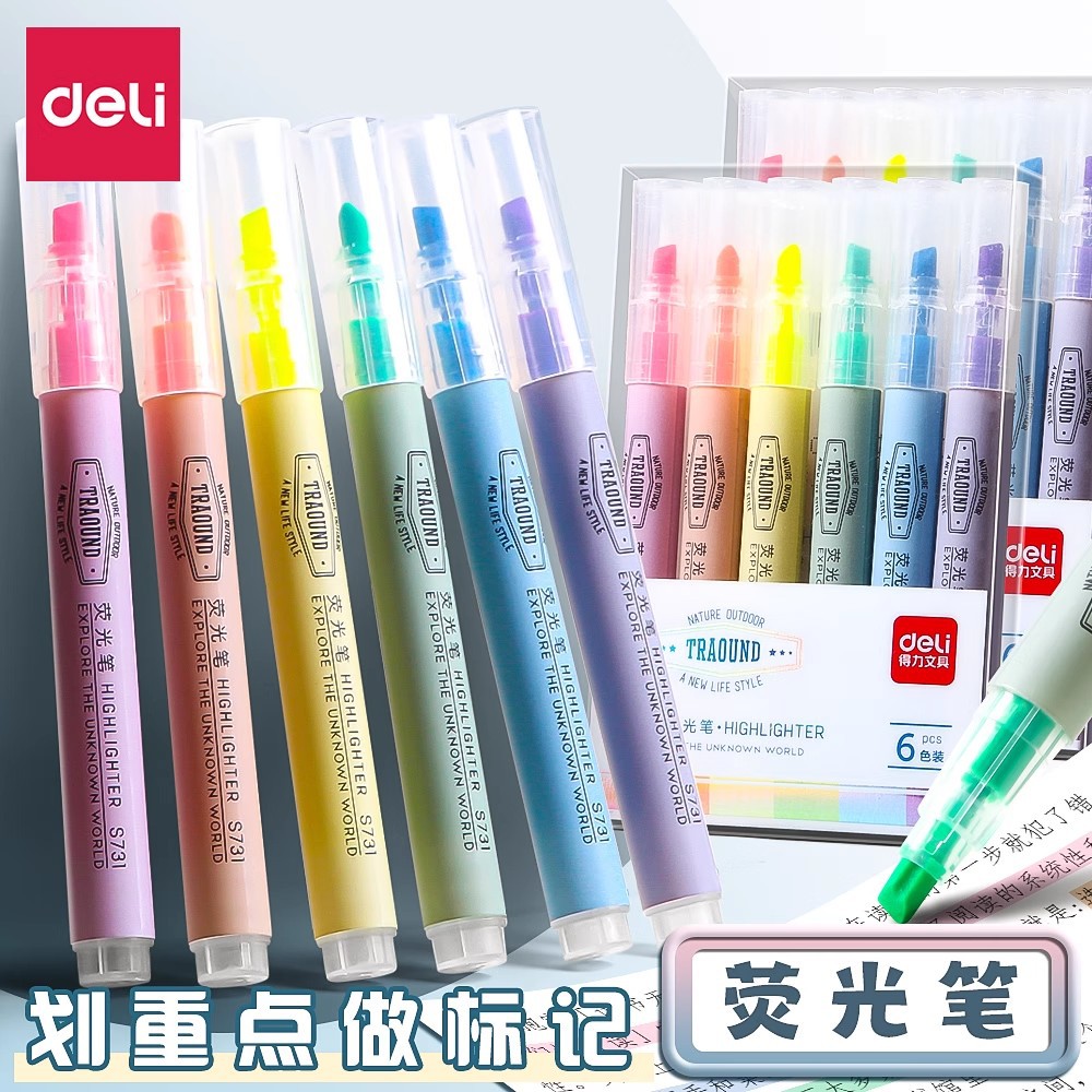 デリ蛍光ペン 学生用 キーポイントマーク用 淡色6色系 インスタ映え 高颜值 カラフル両端マーカーペンセット