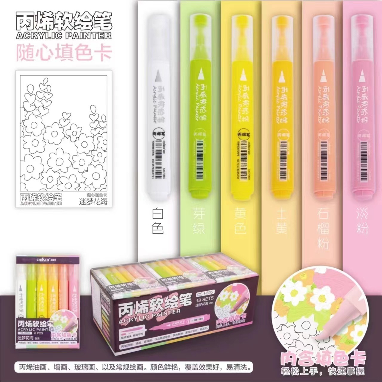 押して蛍光ペンの6色のセットを保護します。