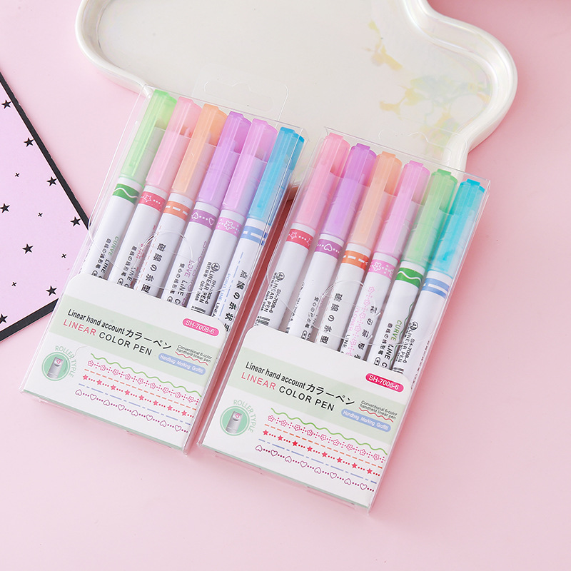 双頭蛍光ペン学生用手帳ペンマーカーカラーマーカー6色絵画ペン文房具卸売り