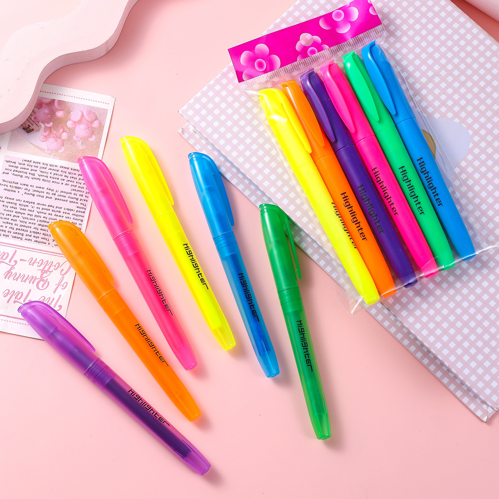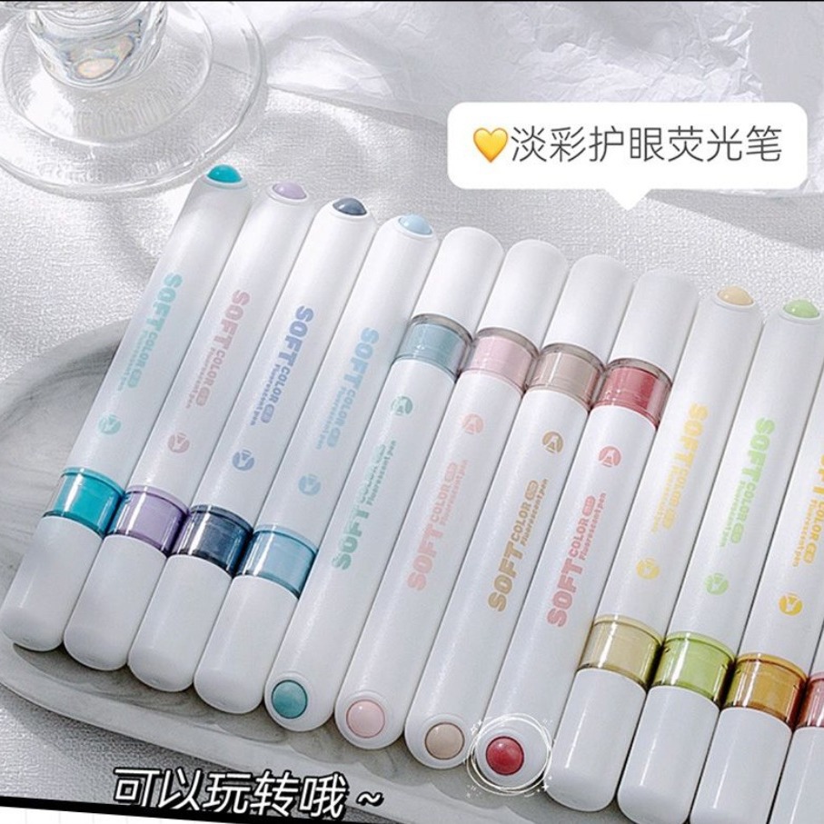 減圧ソフトヘッド蛍光ペン、価格重視、手帳ペン、速乾、DIY、丸型、学生用マーカー、蛍光色