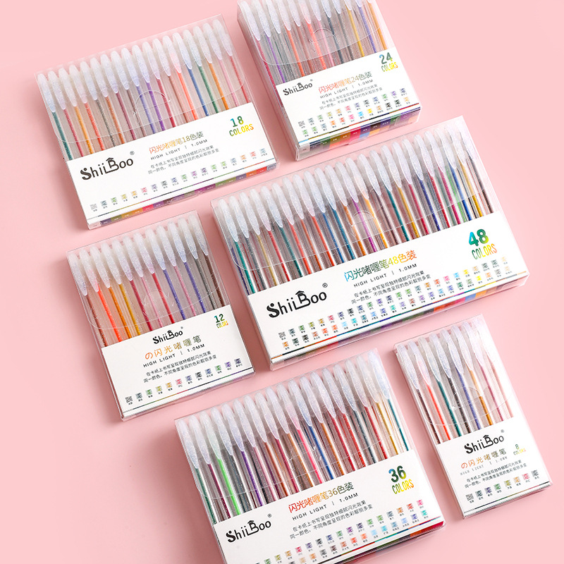 48 色グリッターペンゲルペングリッターパウダースパークリング流砂真珠光沢のあるペン学生ハンドブックペンカラー蛍光ペン卸売