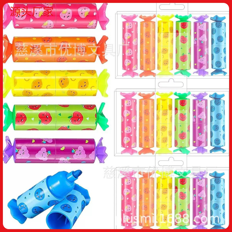 6色のアニメキャンディーの蛍光ペンを卸売りします。