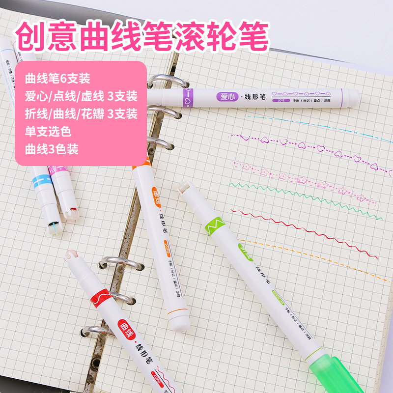 創意手帳曲線ペン高颜値学生花型輪郭ペン重点マーク線カラー単頭曲線ペン