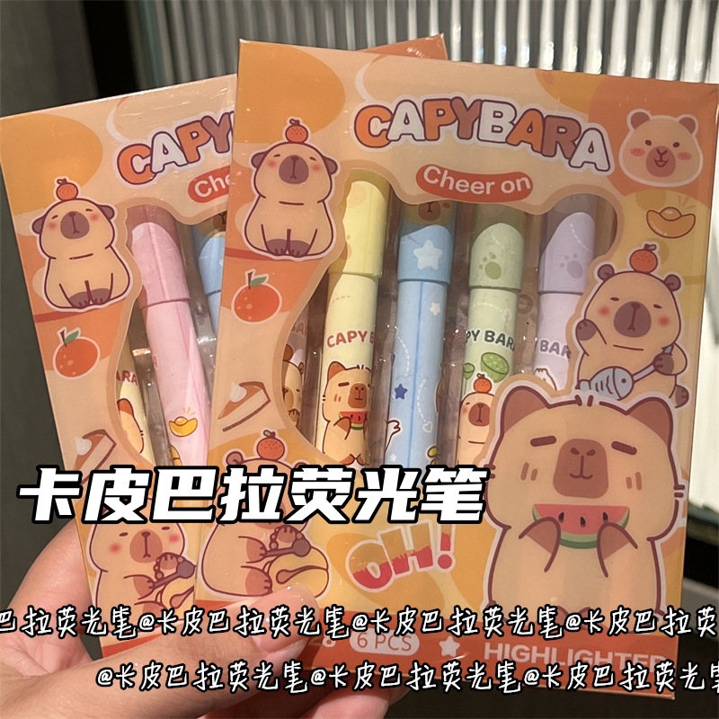 カピバラ蛍光ペンかわいい漫画高颜値眼色カラー手帳ペン学生は重点マーカーペンをつけた