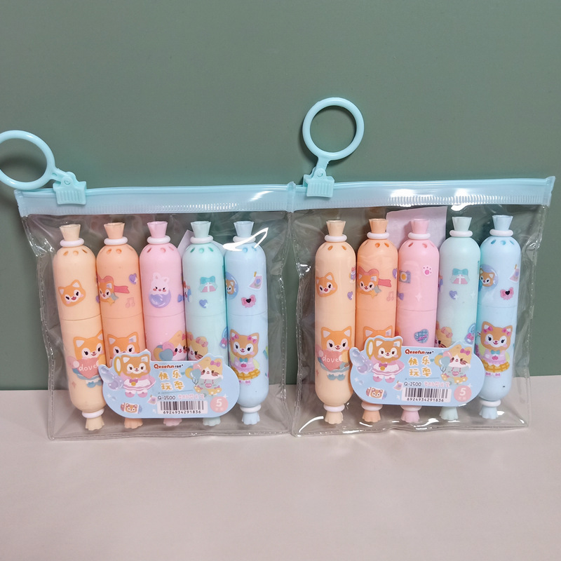 外国貿易クロスボーダー蛍光ペン狐ソーセージ5色アニメハム腸手帳ペン重点スクライブ蛍光ペンバッチ