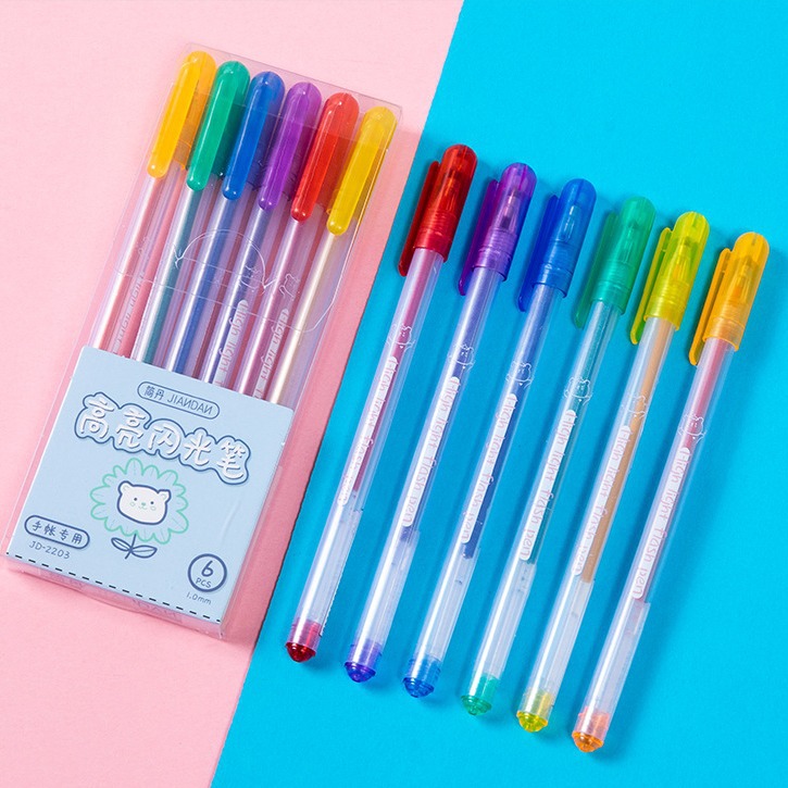 簡丹ハイライトフラッシュペン創意手帳ペン蛍光ペン多色筆フラッシュカラーペン六色セットパステルカラーハイライト