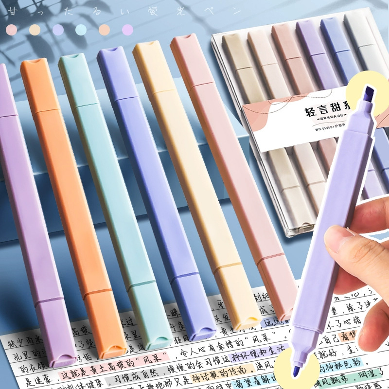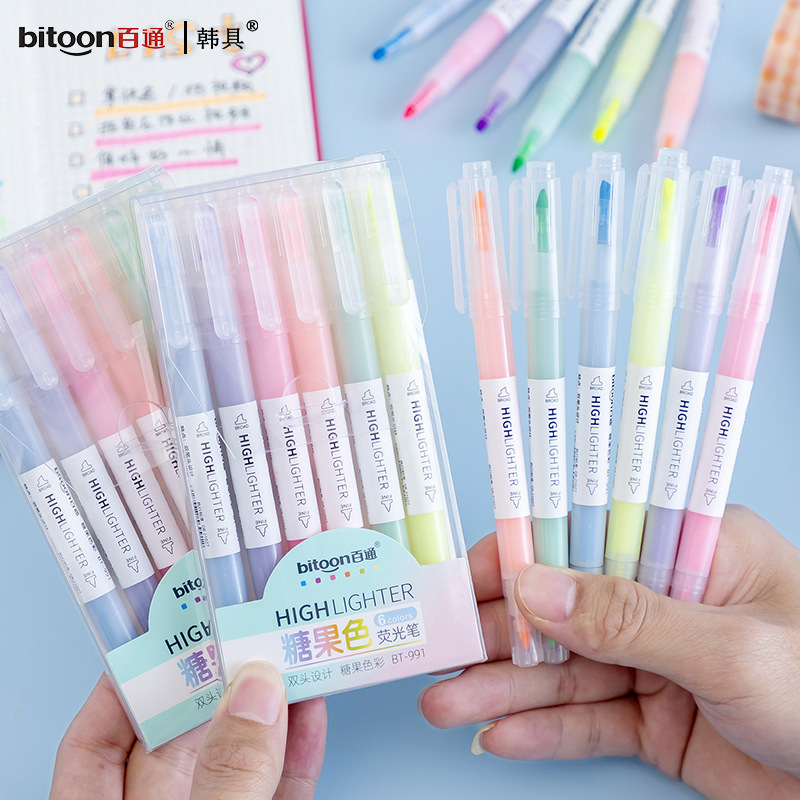 6色ダブルヘッド蛍光ペン一本入キャンデーカラー手帳日記マーカーペン淡色系装飾マーカーペン