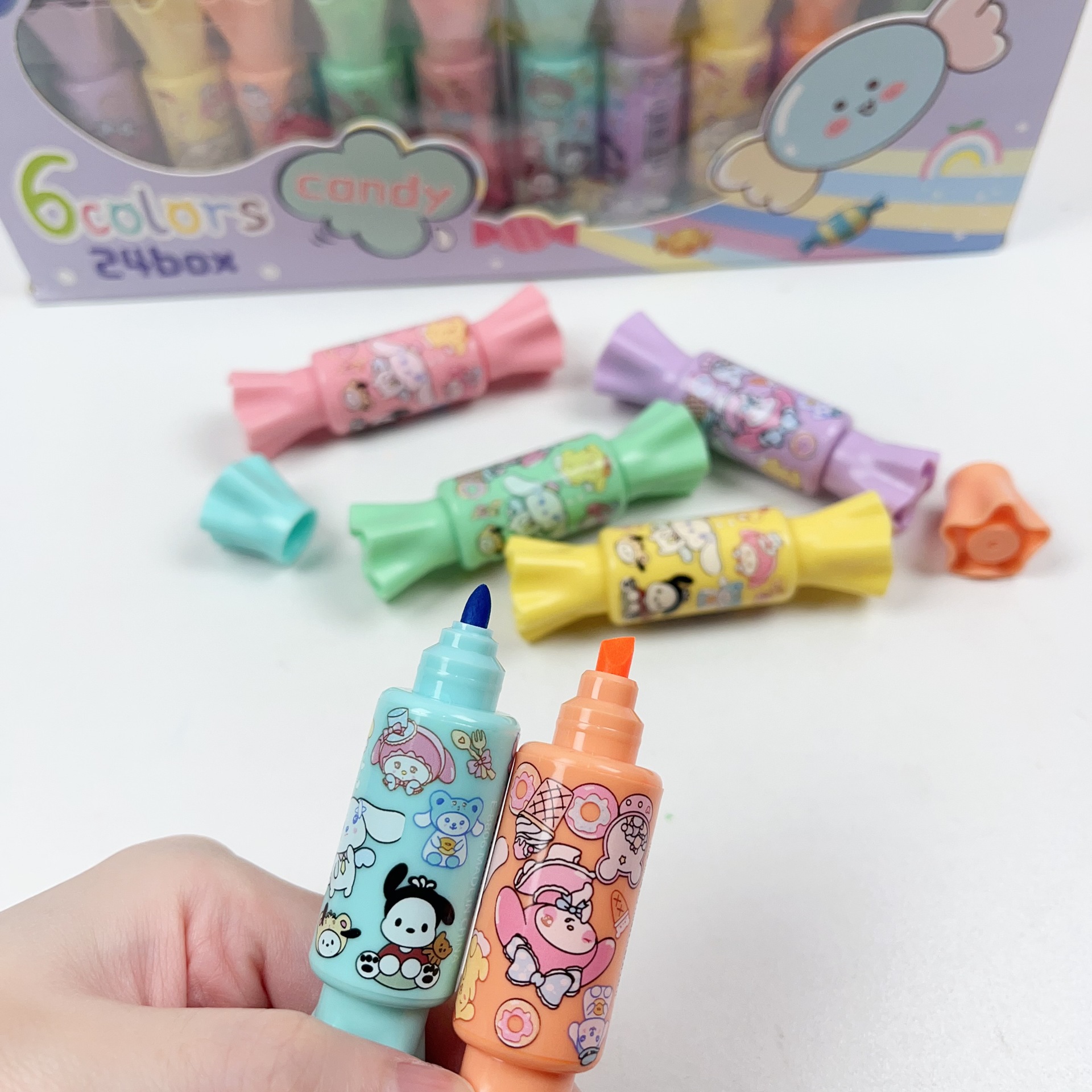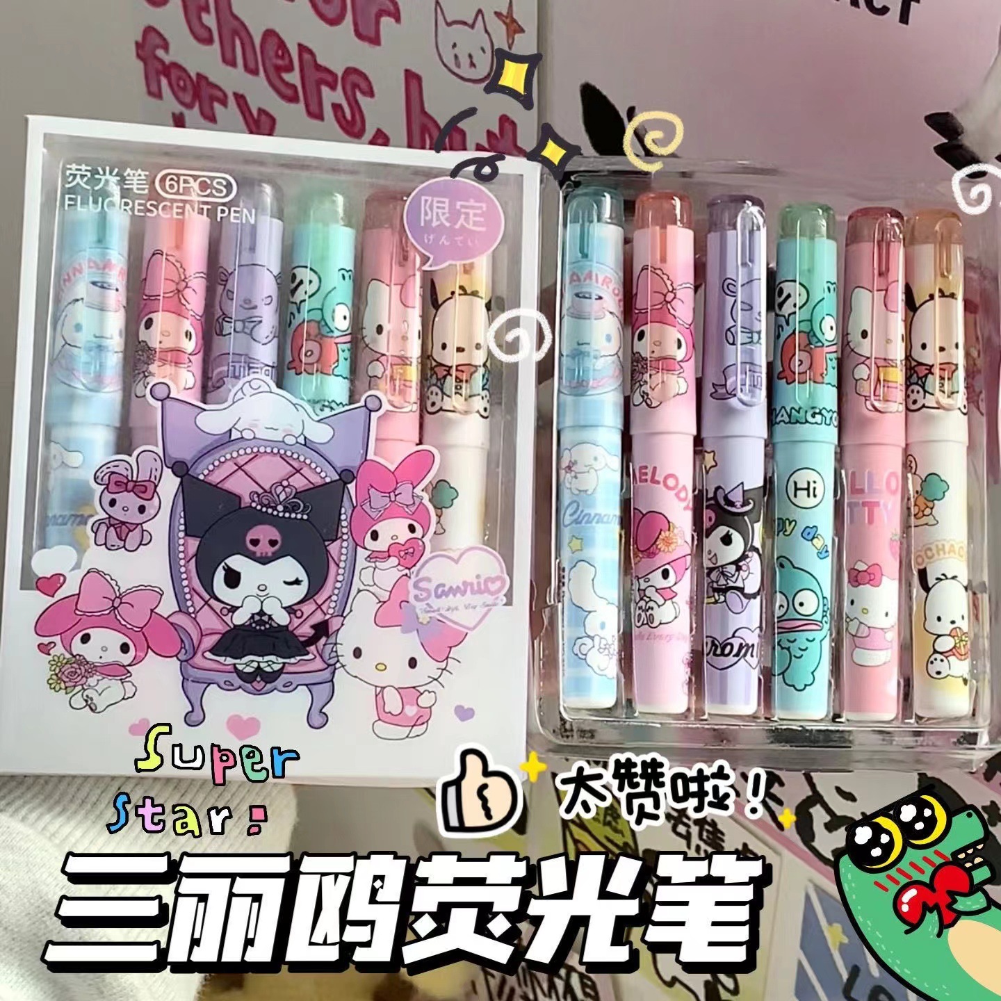 かわいいサンリオ蛍光ペン6本箱入り高颜値カラーペン多机能クロミ少女心蛍光ペン