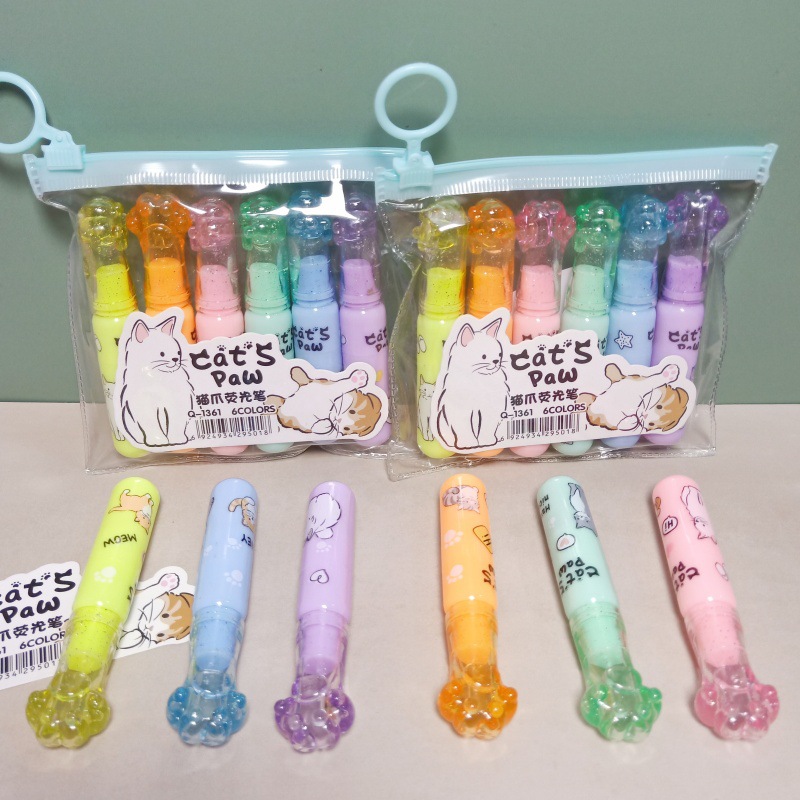アニメミニ6色蛍光ペンセット高颜値アニメデザイン学生カラーマーカー