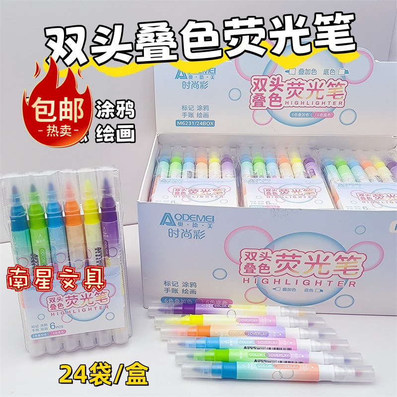 オードメ双頭畳み色12色蛍光ペン学生手帳ペンマーク落書き絵画DIYカラーペン6本入り