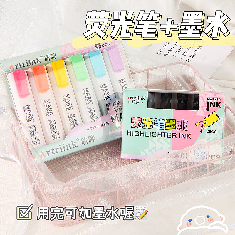香り高い颜値蛍光ペン手帐ペン蛍光色マーカーペン水彩ペンポケットポータブルカラー蛍光ペン