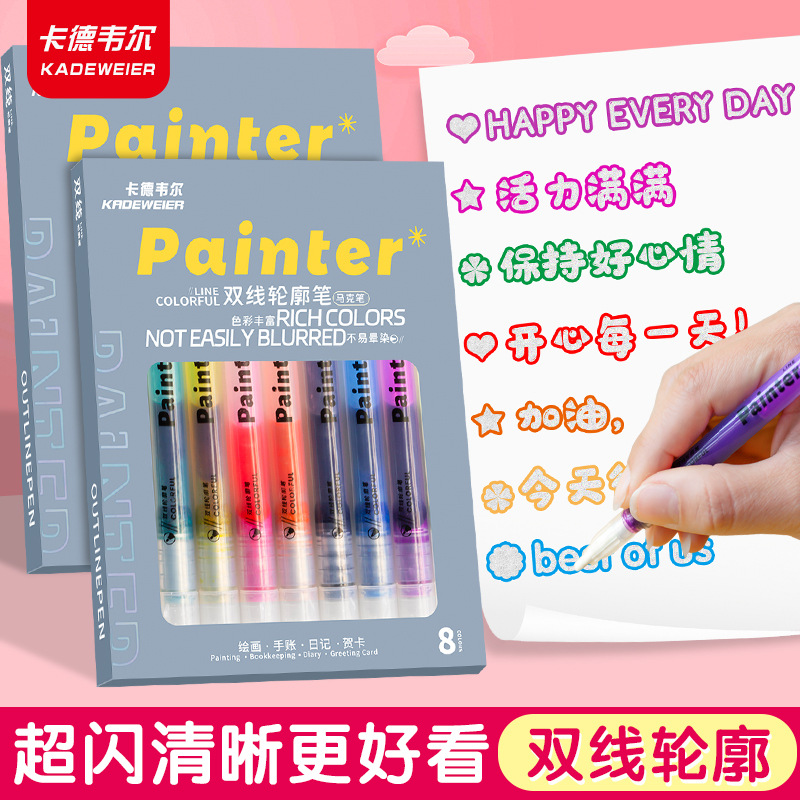 カーデルウェル ダブルラインアウトラインペン 小学生 DIY 落書き絵画 カラーマーカー ハイライター メモを取る