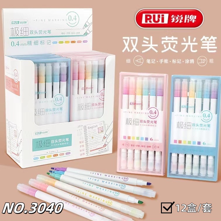 鋭牌3040両頭蛍光カラーペンソフトヘッド淡色系手帳マーカーマカロン蛍光ペン