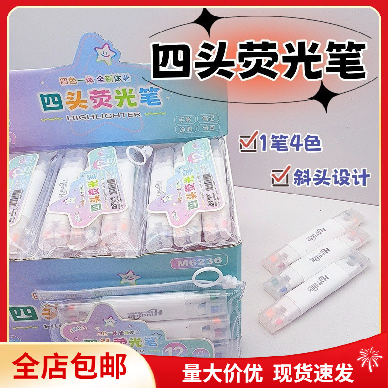 送料無料 Aodemei 高価値学生デュアル目的ノート落書きマーカーノートマーカー 4 ヘッド蛍光ペン 2-in-1