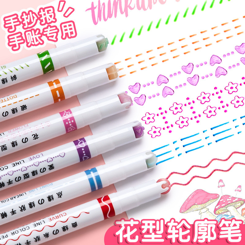 花型の輪郭の筆の曲線の筆の手のペンの双線のダブルヘッドのカラーの手の新聞のローラーのレースの筆の蛍光のペンの卸売り