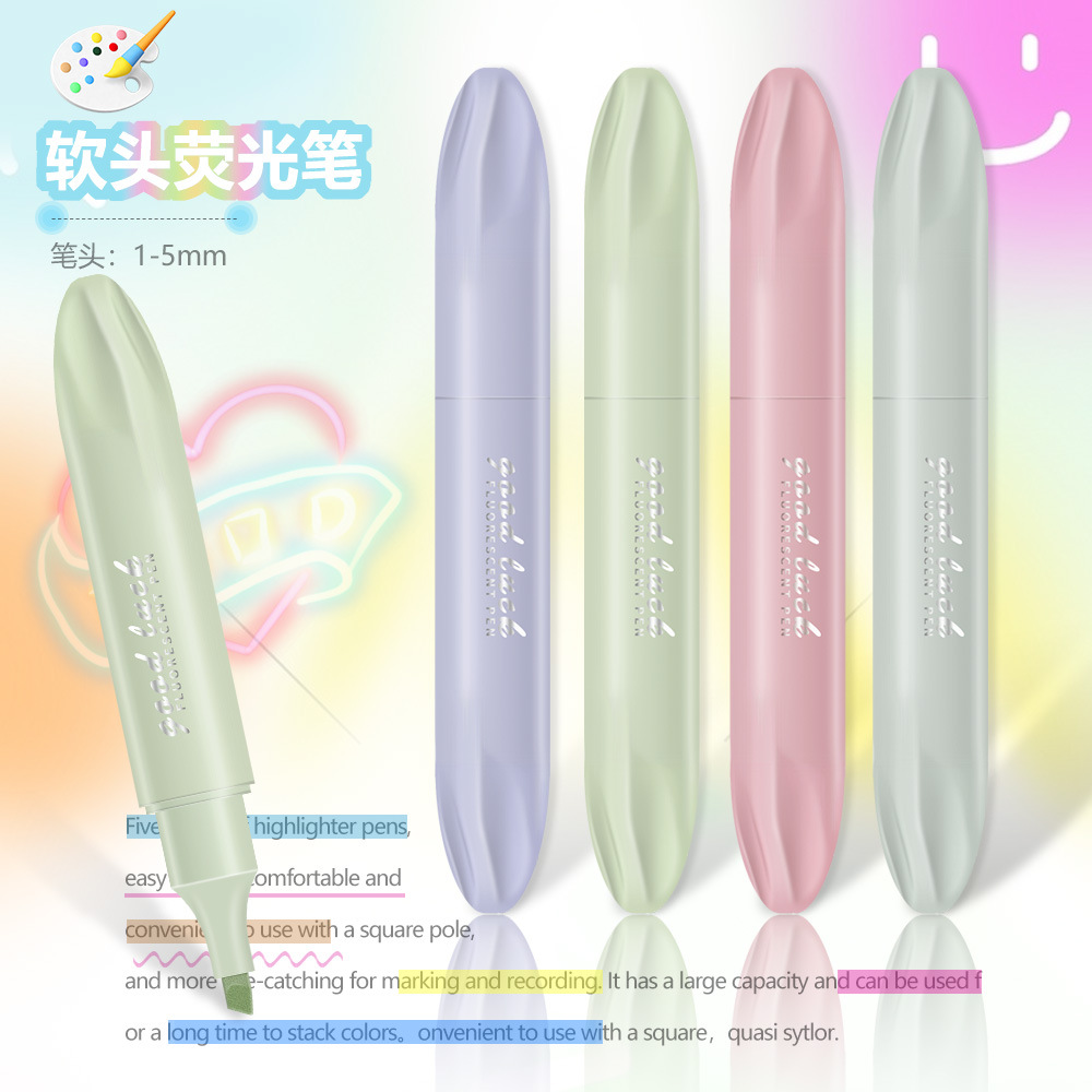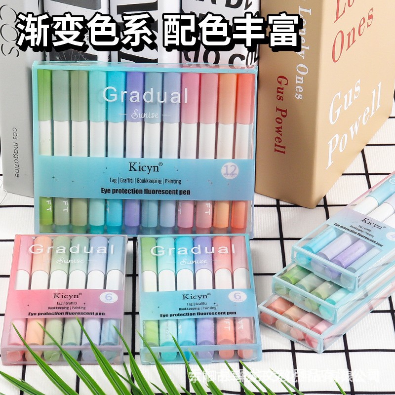 ソフトヘッド蛍光ペン高颜値グラデーション色学生手帳ペン重点マーカーペン塗装斜頭蛍光ペンセット