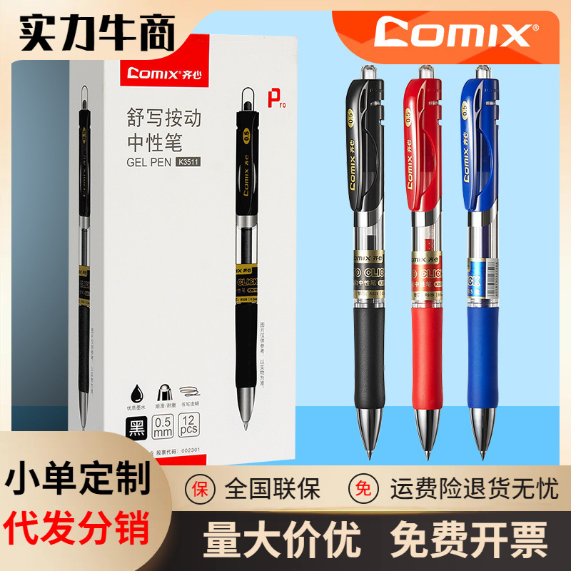 東米668大容量プッシュ式ゲルインクペン クラシックシンプル速乾0.5mm 練習用黒・青・赤ペン 文房具卸売