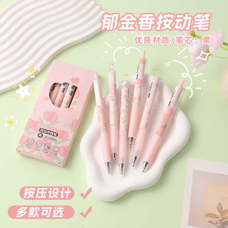 新しいピンクチューリップ筆ペン高価値インスタイルガールズハートゲルペン0.5速乾性試験プレスペン