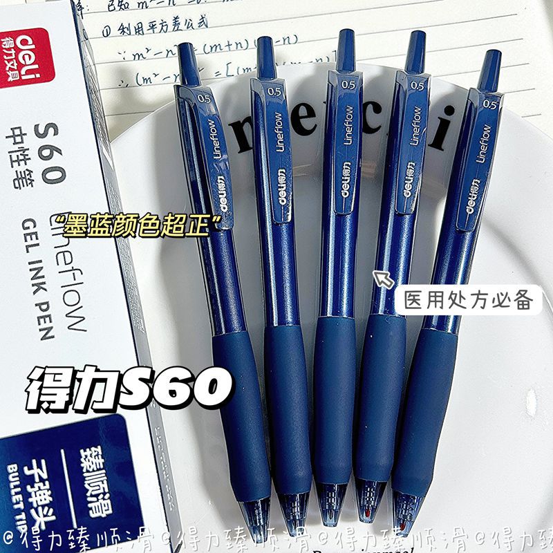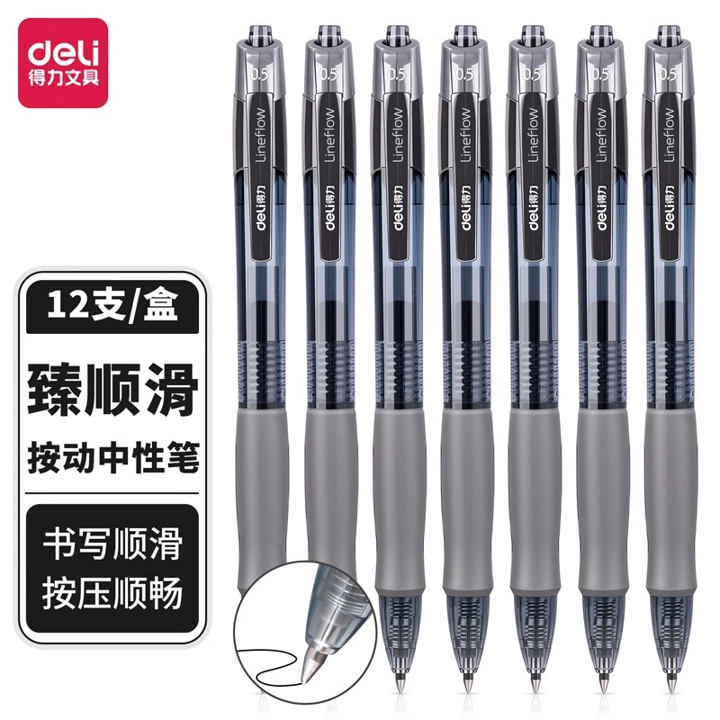 Deli/有力s08押し中性ペン0.5mm弾丸学生試験事務文房具押しペン水筆