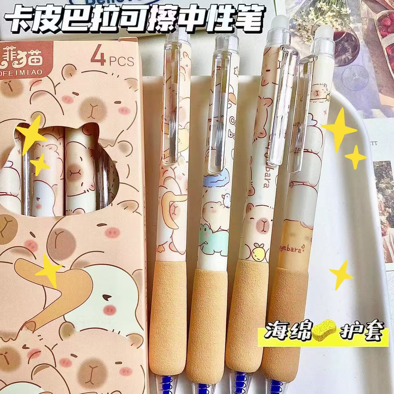 カピバラ熱可拭ペン高颜値小学生専用押し中性筆スポンジ摩易拭晶青カーボンブラック