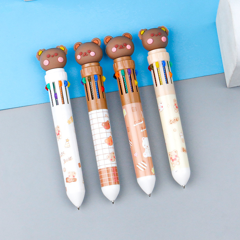 クマ10色ボールペン漫画プッシュ式多色カラーペン学生筆記具十色押しボールペン