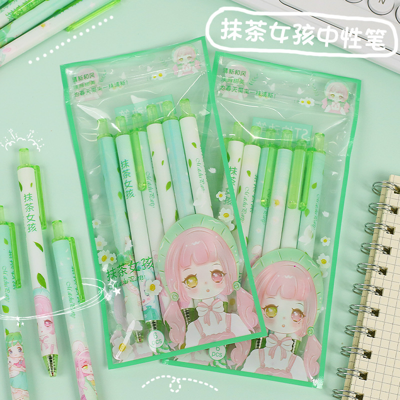 かわいい6本袋入り抹茶女の子押し中性ペン学生insオフィスサインペンst速乾中性水ペン