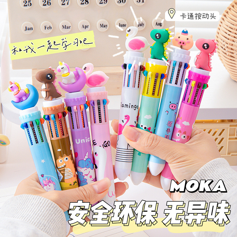 箱入り十色ボールペン高颜値漫画学生がペンカラー手帳ペン0.5かわいい造形卸売りを押す