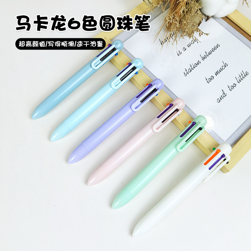 マカロン6色ボールペン高颜値カラー手帳文房具用品学生耐落多色押しペン