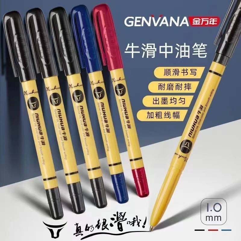Jinwannian 1.0 ミリメートル牛スムーズ中油性ペン滑らかで連続インク太字オフィス教師特別な弾丸ボールペン