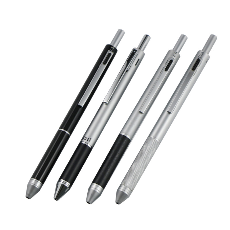 重力誘導ペン多機能金属赤青黒三色ボールペン自動鉛筆金属四色ペンを供給する