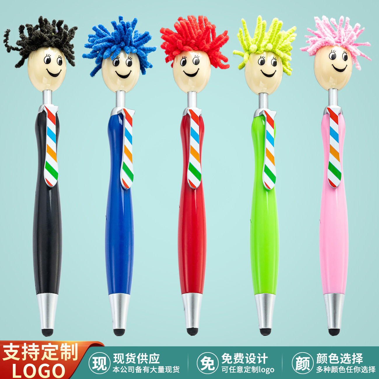ぬいぐるみの子供の頭のプラスチックのボールペンはlogo立体の漫画の笑顔のタッチペンのクリスマスの贈り物のペンを印刷することができます。