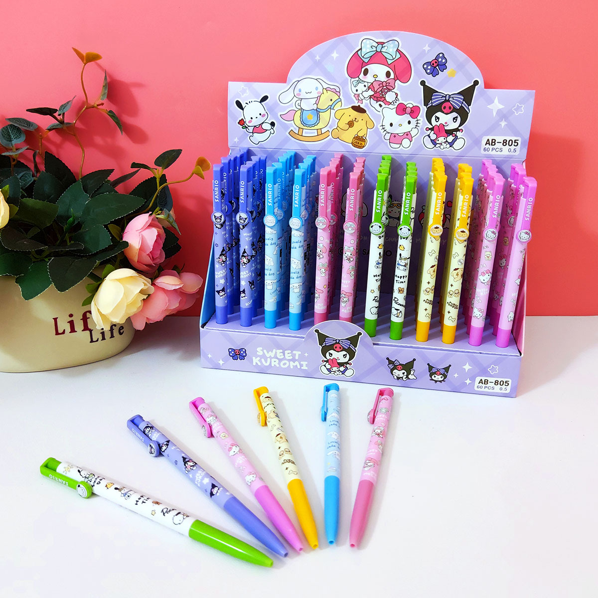 アニメかわいいサンリオ押しボールペン一箱60本速乾青筆学生高颜値創意クロ筆