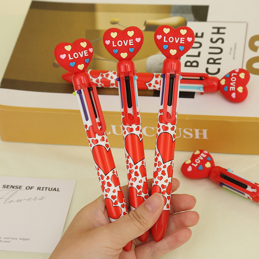 赤い愛の六色はボールペンの創意的な個性の学生の手の帳簿のペンの卸売りの広告の宣伝の中で油のペンを押します。