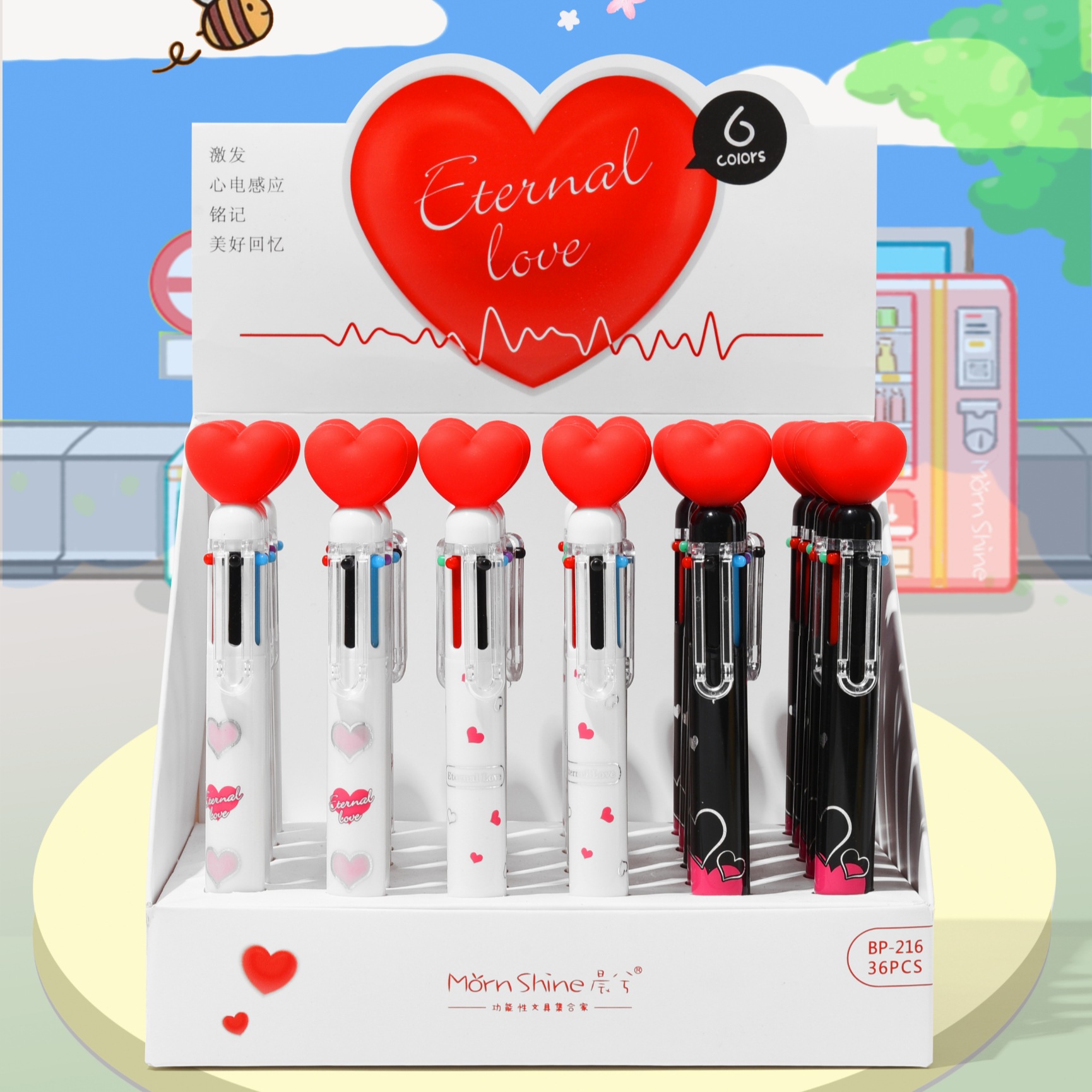 朝の216愛の形の6色のボールペンは多色の中性のペンの学生のカラーの手帳のペンのマーカーのペンを押します。