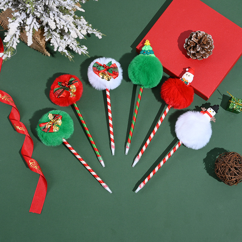 2024新型サンタクロース雪だるま毛球ペン漫画祝日ギフトペン毛足ペン学生ボールペン起爆金