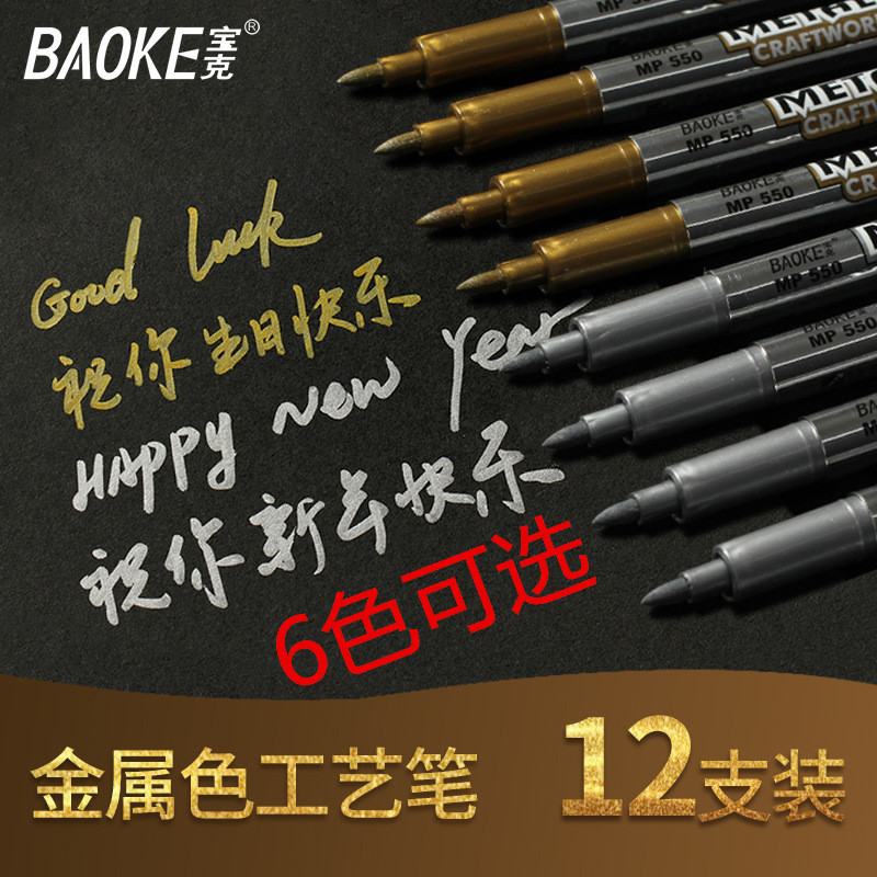 6色のオプション宝克mp550金属色工芸ペンペンキペン金銀招待状署名カード名筆