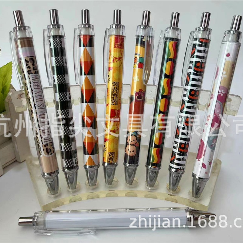 Diyプラスチックビーズペン創意手作り豹紋砕花乳牛ビーズペン卸売りプリント新プラスチックビーズペン