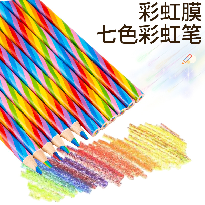 クロスボーダー鉛筆レインボーペン7色一体型7色絵画鉛筆成人学生プレゼントDIY原木
