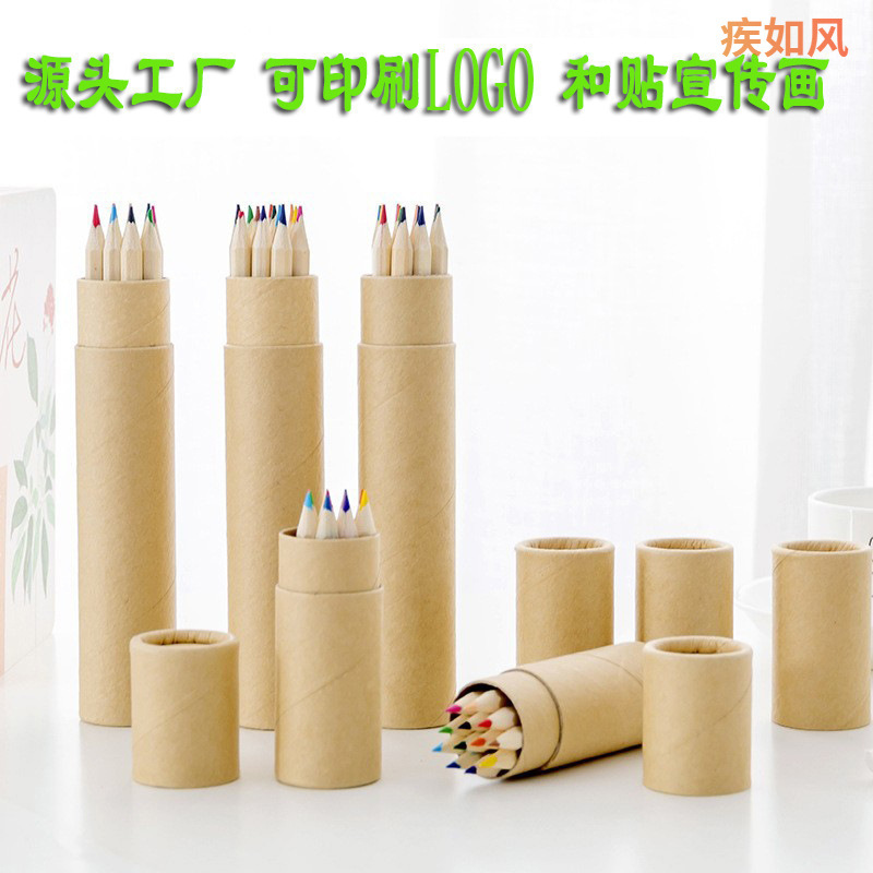 12色の木製筒入り色鉛筆、学生の絵画や落書き用、広告宣伝やロゴのカスタマイズ、卸売も可能