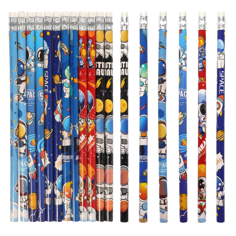 アマゾン文具 鉛筆 宇宙飛行士 HB鉛筆 漫画柄 消しゴム付き 貿易文具 12本入り鉛筆 工場