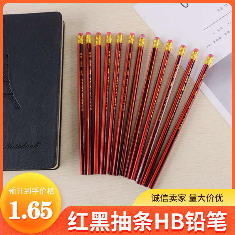 小学生向けのクロスボーダー人気のクラシックな赤と黒のストライプ鉛筆、初心者向けの消しゴムヘッド付き六角棒付き