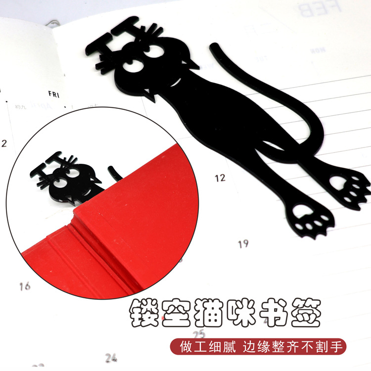 新しいクリエイティブな中空子猫アクリルブックマーク中空ブックマーク黒子猫ぶら下げブックマーク