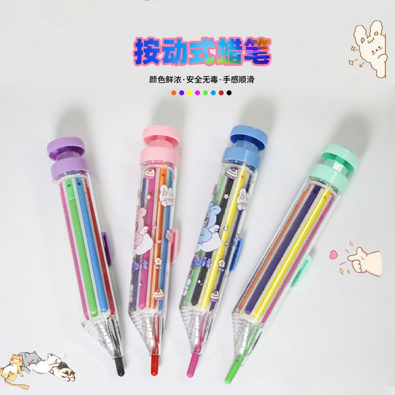 回転クレヨン汚れない手クレヨン8-in-1回転多色クレヨン子供プラスチック8色押しクレヨン