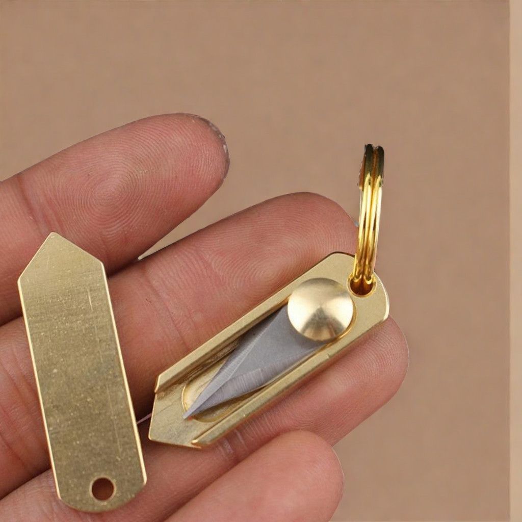 真鍮製エクスプレスカッターキーホルダー、携帯ミニパッケージ開封ツール、護身用ペンダント、アウトドア用カッターナイフ