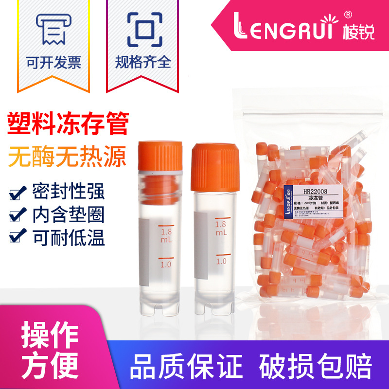 稜鋭2ml凍結貯蔵管スパイラルプラスチック冷凍管無菌凍結貯蔵管ワッシャー付き液体窒素100本/バッグ