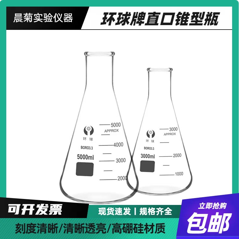 ユニバーサルガラス直口三角フラスコ高ホウ素シリコン厚さストレートフラスコ500/1000/2000/5000ml